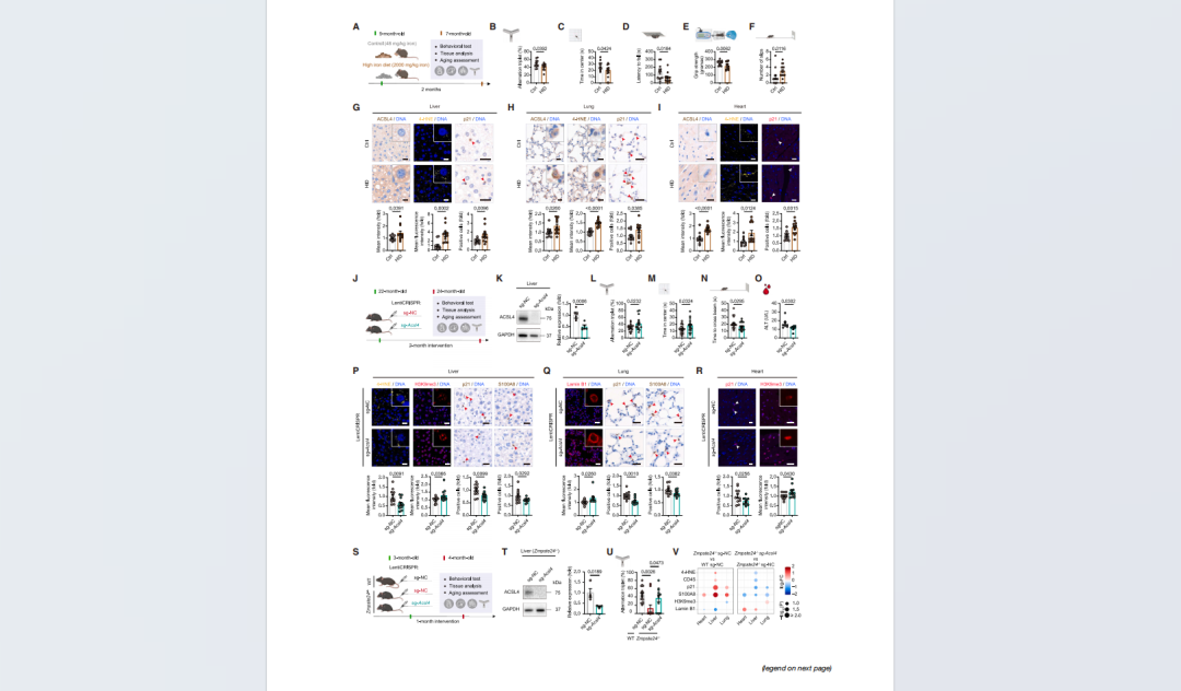 在这种情况下,即使仍然存在铁过载,小鼠体内的脂质损伤也明显减少,相关的衰老表现也得到缓解。