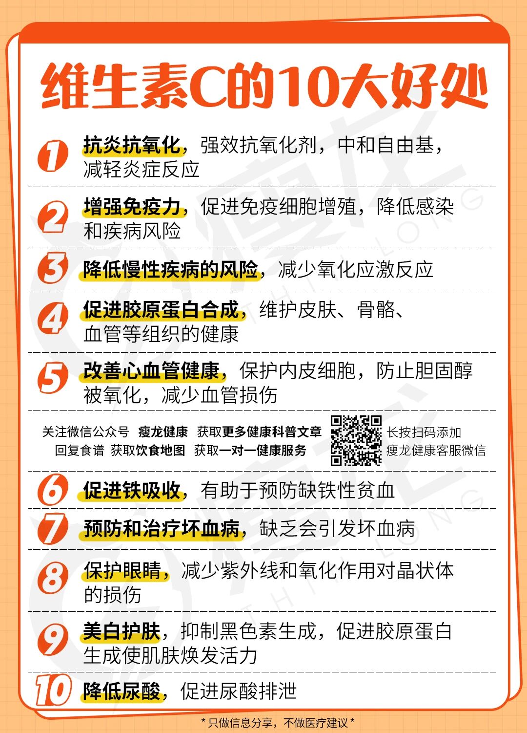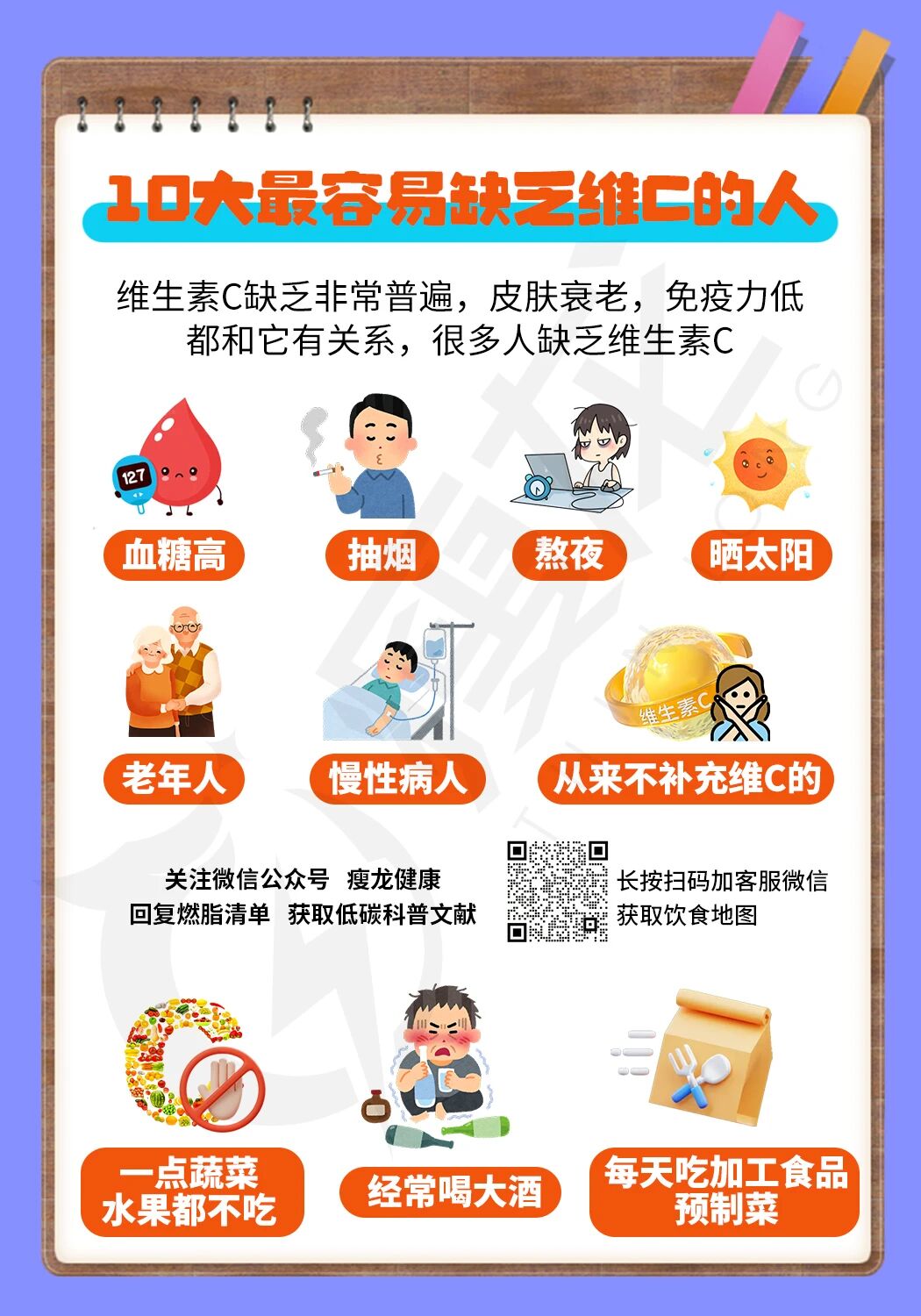总之,如果本身就是容易缺乏维生素C的人群,特别是血糖问题,一定要注意有效补充维生素C,食物中补充不到位的,可以考虑从补剂中摄取。