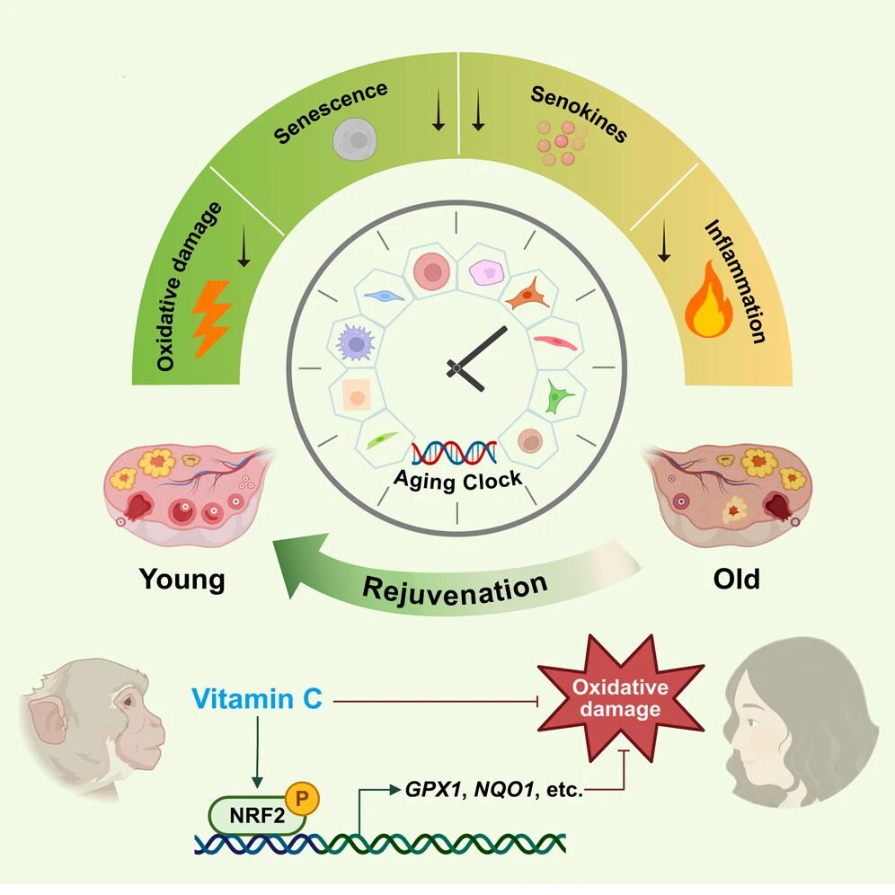 最近,我国科学家在《细胞·干细胞》杂志上发表的一篇论文,首次在非人灵长类动物中证实,口服维生素C能够有效延缓卵巢衰老。