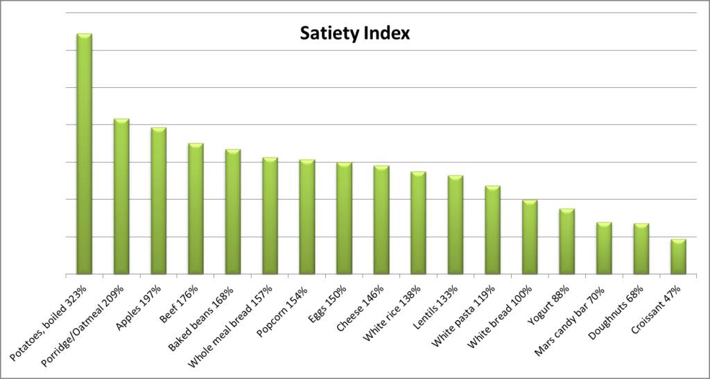 其实,有关食物的饱腹感,有一个专业的指数,就是饱腹感指数(SI)=卡路里/饱腹感。