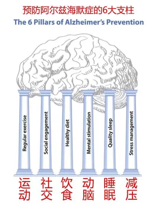运动、社交、饮食、动脑、睡眠、减压,这6种方法不仅对阿尔兹海默症有预防和缓解症状的功效,对于任何年龄的脑保健也一样有效。⑤