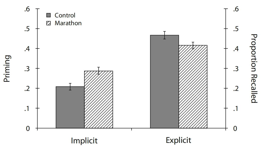 早在 2009 年,就有研究发现,参加完马拉松,会改变记忆功能,导致外显记忆受损,内隐记忆增强。④